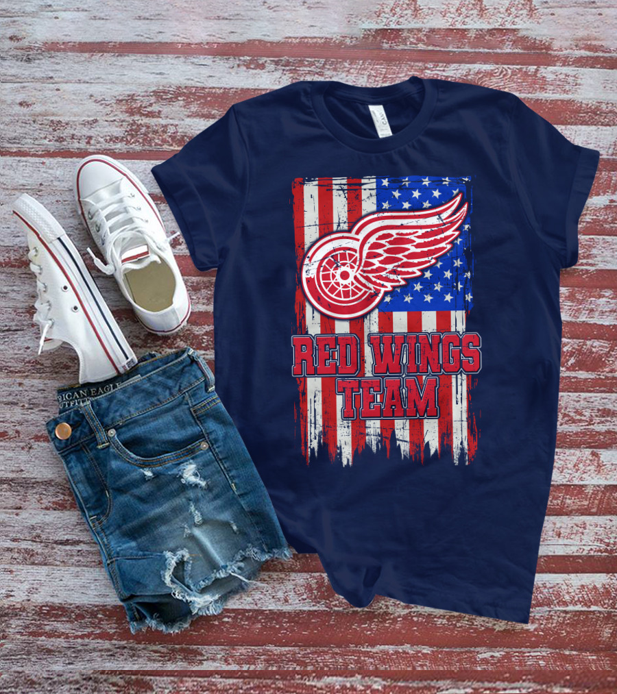The Detroit Red Wings Team American Flag Shirt offers a regular fit. Made from 100% ring-spun cotton that is pre-shrunk to help maintain size and shape after washing. Features reinforced construction details for durability. Available in U.S. standard sizes S-5XL to accommodate various body types.
