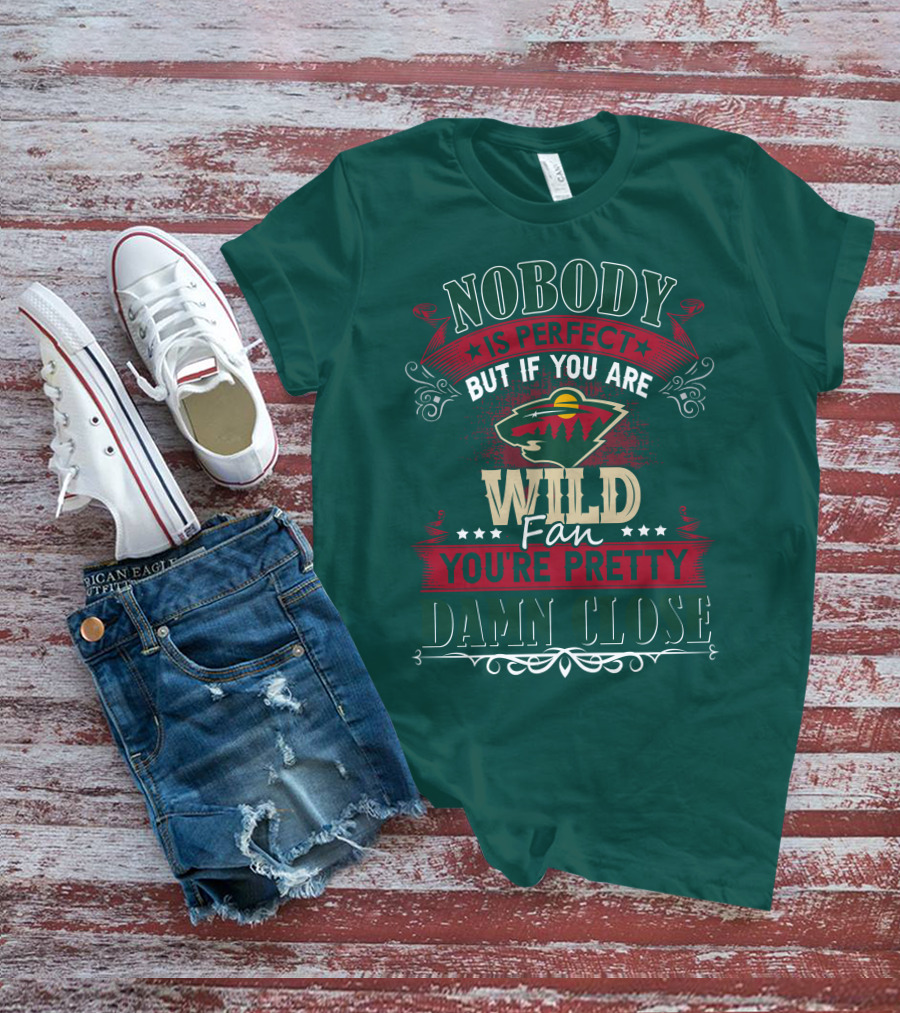 The Nobody Is Perfect But If You Are Wild Fan You're Pretty Damn Close Minnesota Wild Shirt offers a regular fit. Made from 100% ring-spun cotton that is pre-shrunk to help maintain size and shape after washing. Features reinforced construction details for durability. Available in U.S. standard sizes S-5XL to accommodate various body types.