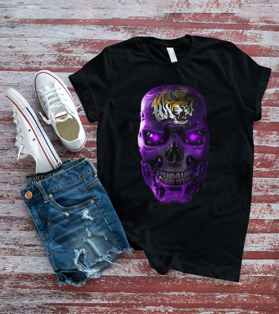LSU Tigers Skull With Purple Cybernetic T-Shirt