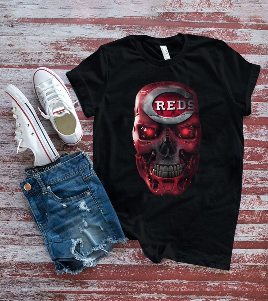 The Cincinnati Reds Terminator Skull Shirt offers a regular fit. Made from 100% ring-spun cotton that is pre-shrunk to help maintain size and shape after washing. Features reinforced construction details for durability. Available in U.S. standard sizes S-5XL to accommodate various body types.