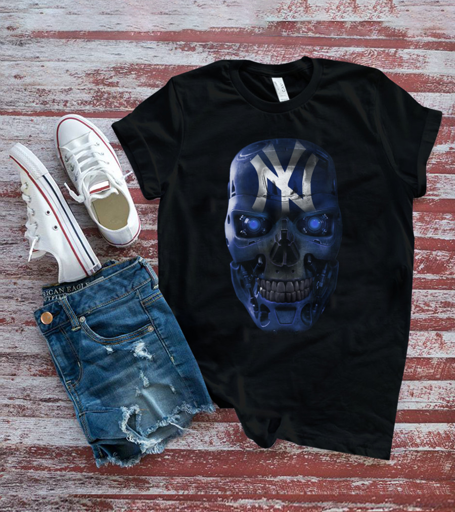 YANKEES SKULL ROBOTIC FACE BLUE GLOWING EYES T-Shirt
