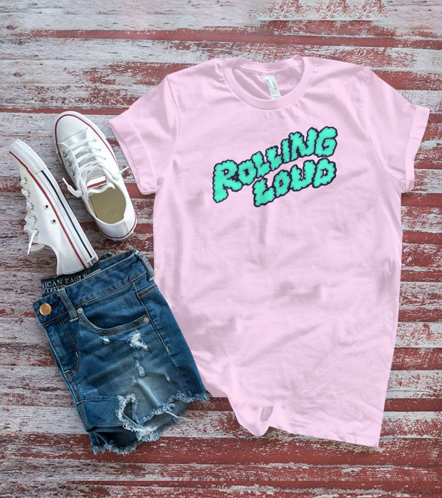 Rolling Loud Puffy Text Design On Pastel Pink Background T-Shirt