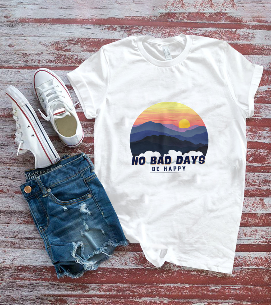 NO BAD DAYS BE HAPPY Sunset And Mountain T-Shirt