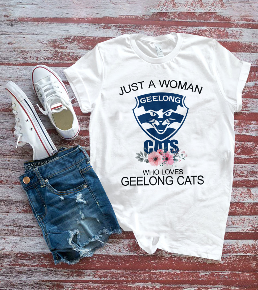 Just A Woman Who Loves Geelong Cats T-Shirt
