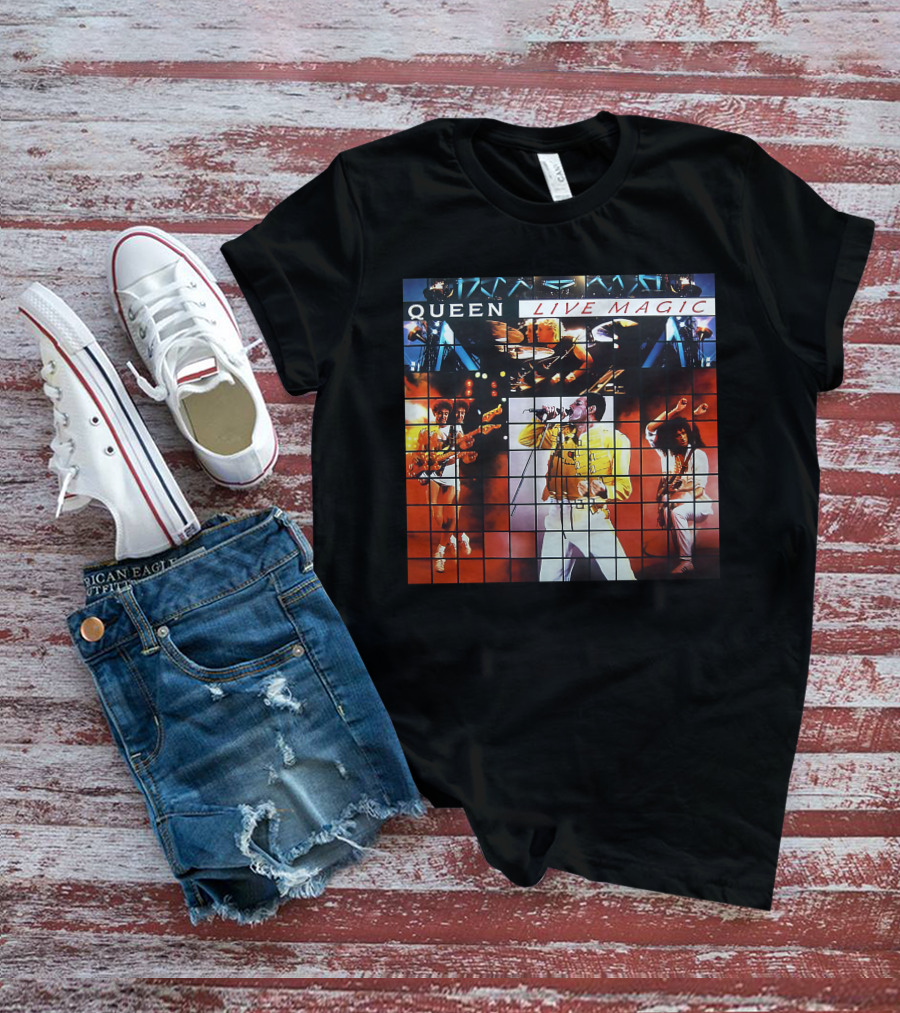The Queen Live Magic Album Cover Shirt offers a regular fit. Made from 100% ring-spun cotton that is pre-shrunk to help maintain size and shape after washing. Features reinforced construction details for durability. Available in U.S. standard sizes S-5XL to accommodate various body types.