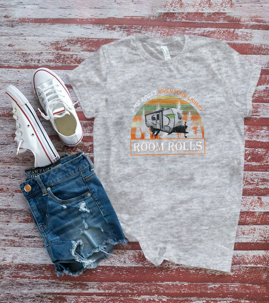 LIFE ROCKS WHEN YOUR LIVING ROOM ROLLS E Pro 20BHS Camper Forest Retro T-Shirt