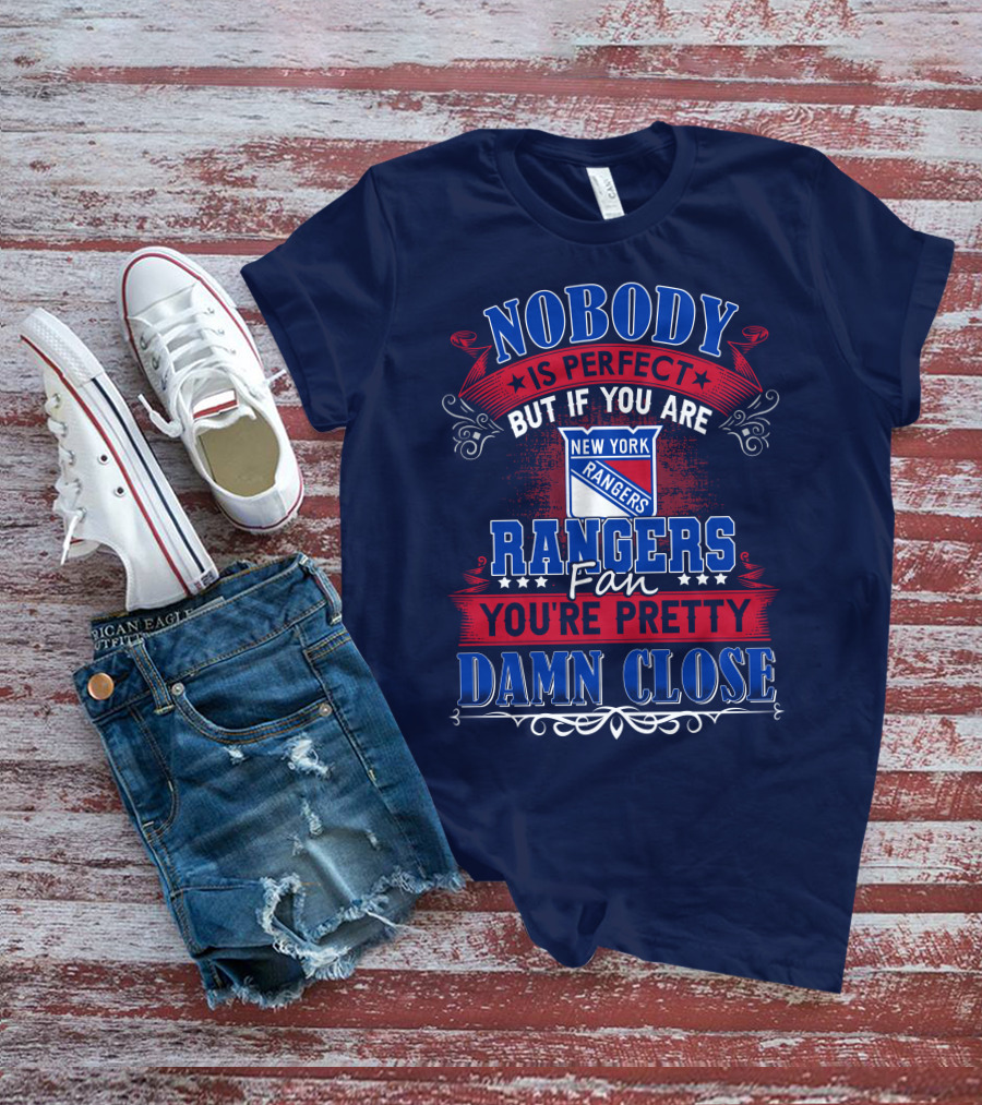 The Nobody Is Perfect But If You Are New York Rangers Fan You're Pretty Damn Close Shirt offers a regular fit. Made from 100% ring-spun cotton that is pre-shrunk to help maintain size and shape after washing. Features reinforced construction details for durability. Available in U.S. standard sizes S-5XL to accommodate various body types.