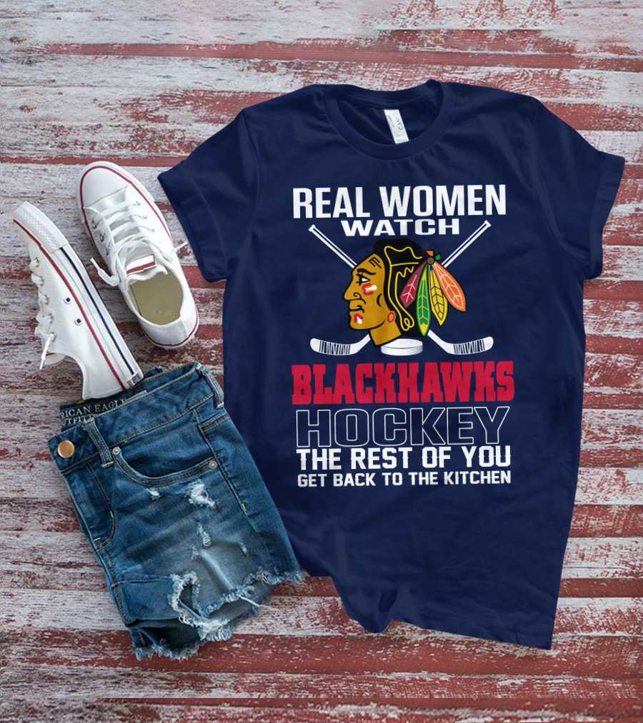 Real Women Watch Blackhawks Hockey The Rest Of You Get Back To The Kitchen T-Shirt
