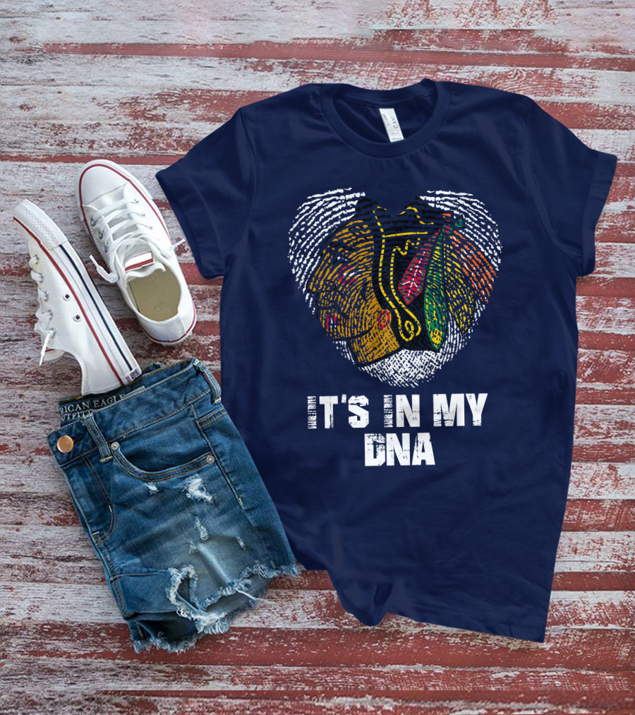 The Chicago Blackhawks It's In My Dna Shirt offers a regular fit. Made from 100% ring-spun cotton that is pre-shrunk to help maintain size and shape after washing. Features reinforced construction details for durability. Available in U.S. standard sizes S-5XL to accommodate various body types.