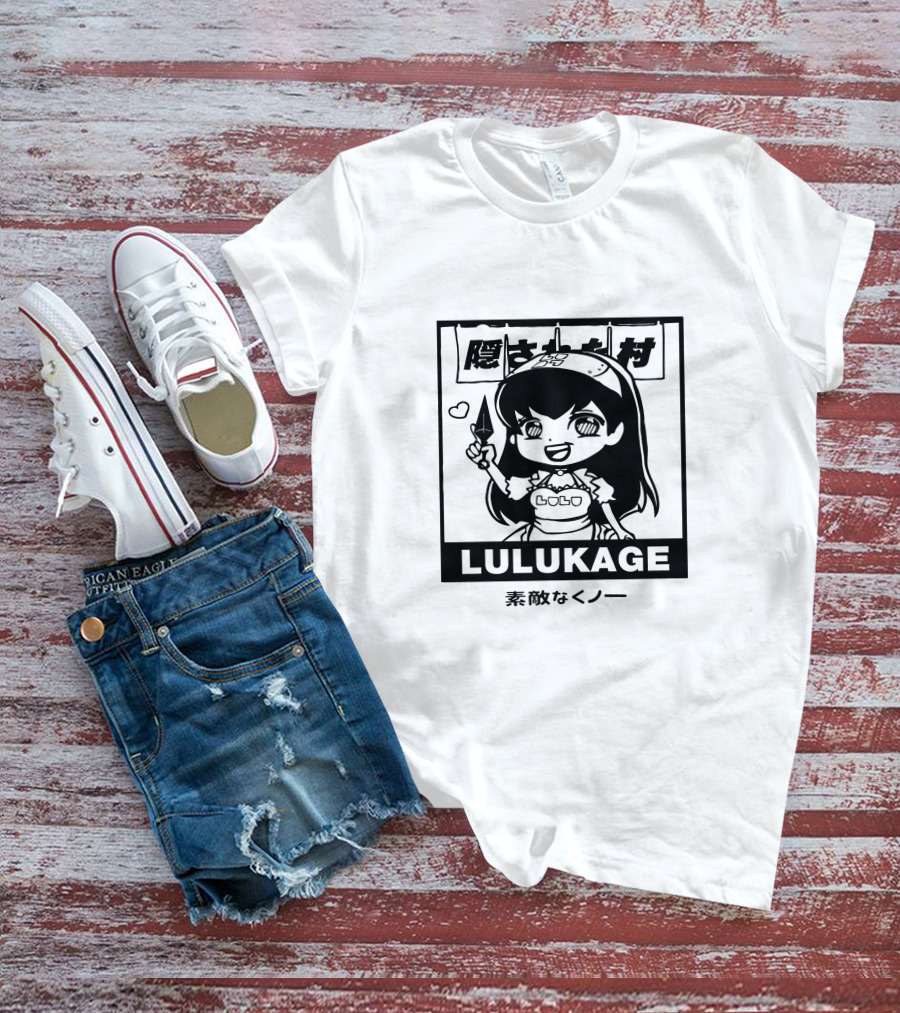 Lulukage Anime Character With Knife And Heart Symbol In Japanese T-Shirt