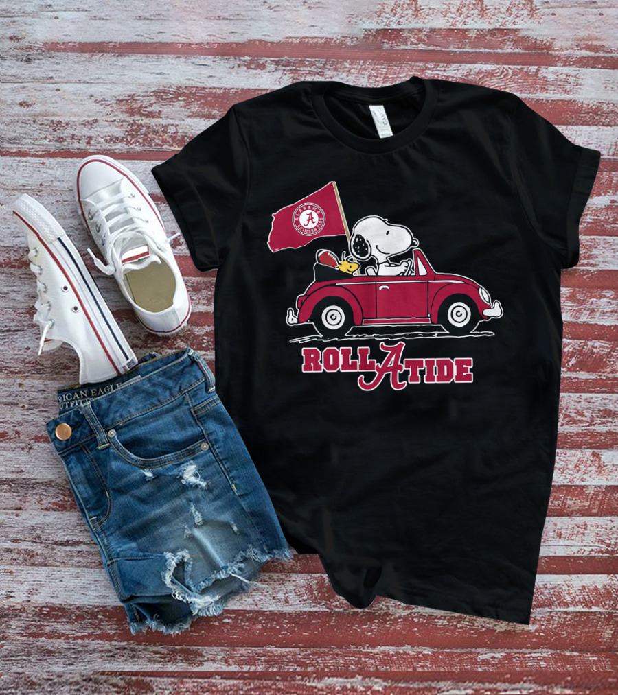Roll A Tide Alabama Crimson Tide Snoopy Driving T-Shirt