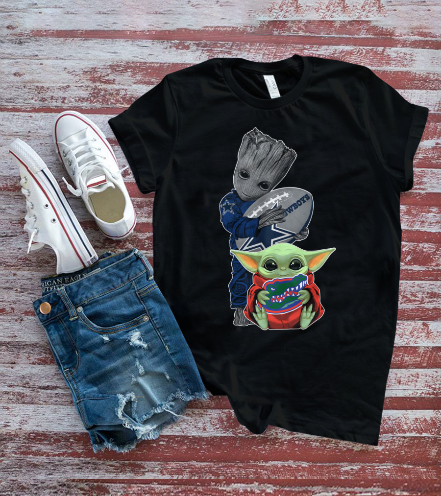 Groot Holding Cowboys Football With Baby Yoda Wearing Gators Hoodie T-Shirt