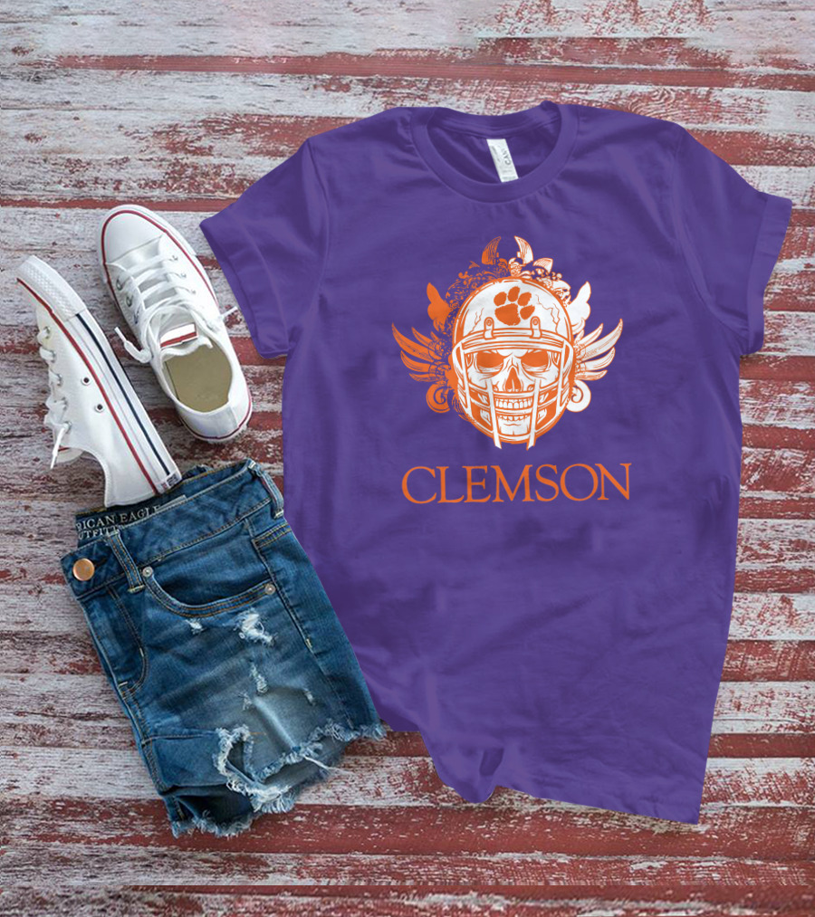 Clemson Tigers Skull Helmet With Wings T-Shirt