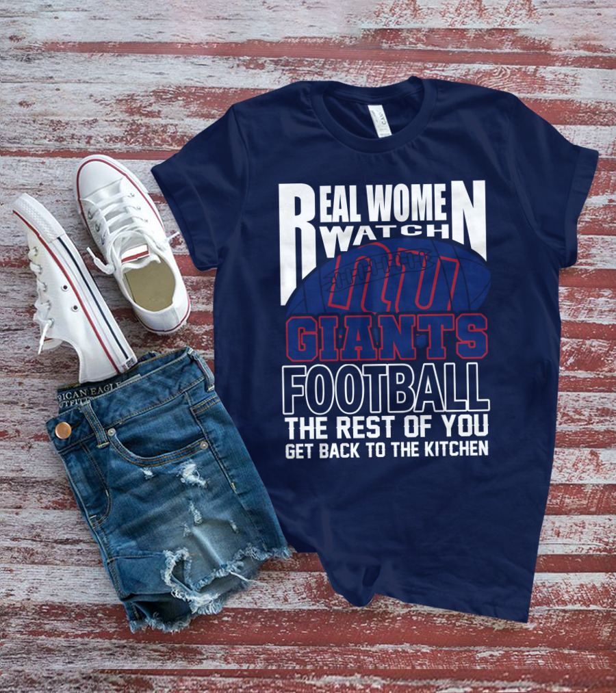 The Real Women Watch New York Giants Football The Rest Of You Get Back To The Kitchen Shirt offers a regular fit. Made from 100% ring-spun cotton that is pre-shrunk to help maintain size and shape after washing. Features reinforced construction details for durability. Available in U.S. standard sizes S-5XL to accommodate various body types.