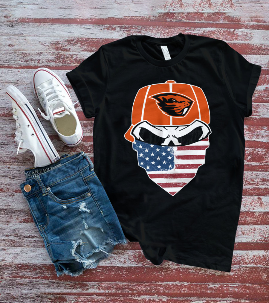 Oregon State Beavers Skull American Flag Bandana T-Shirt