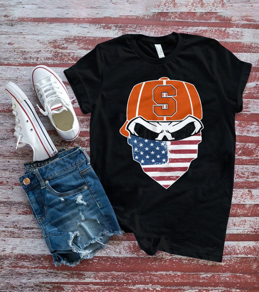 The Syracuse Orange Skull American Flag Shirt offers a regular fit. Made from 100% ring-spun cotton that is pre-shrunk to help maintain size and shape after washing. Features reinforced construction details for durability. Available in U.S. standard sizes S-5XL to accommodate various body types.