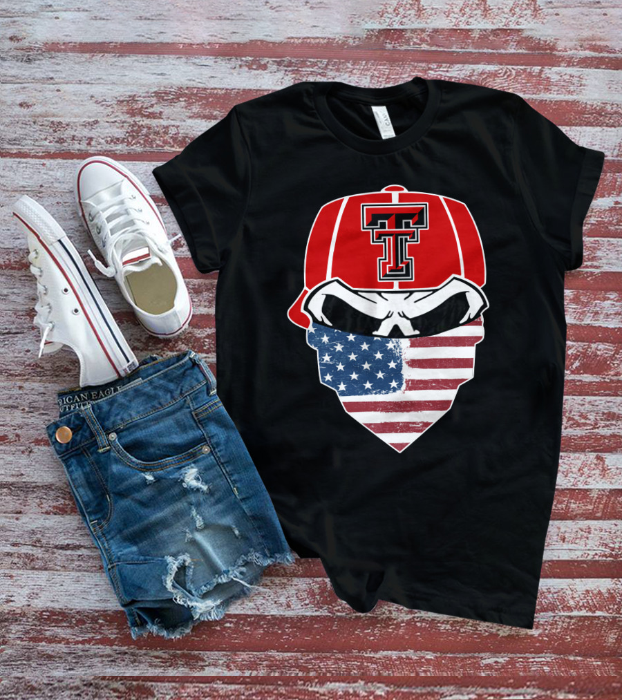 Texas Tech Skuls American Flag Bandana Cap T-Shirt