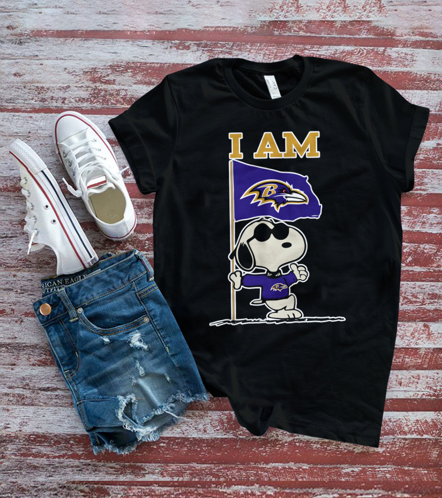 I Am Baltimore Ravens Snoopy Flag Ravens T-Shirt