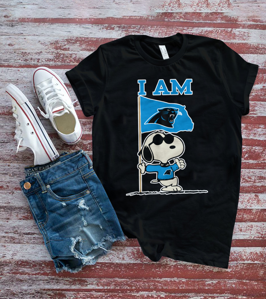 Carolina Panthers Snoopy I Am Peanuts Blue Flag T-Shirt