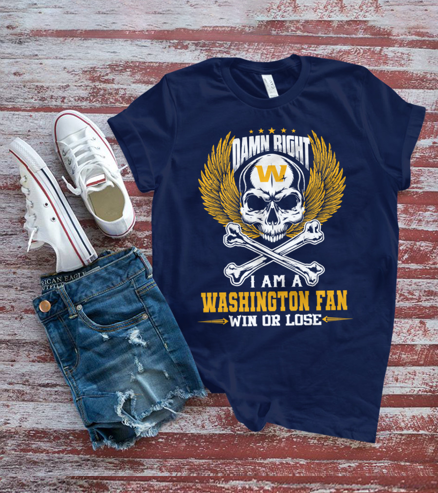 Damn Right I Am A Washington Fan Win Or Lose Skull Wings T-Shirt