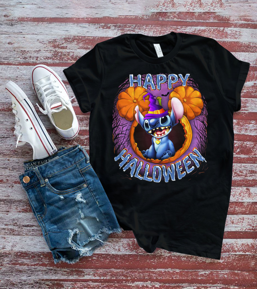 The Stitch Happy Halloween Pumpkin Magic Shirt offers a regular fit. Made from 100% ring-spun cotton that is pre-shrunk to help maintain size and shape after washing. Features reinforced construction details for durability. Available in U.S. standard sizes S-5XL to accommodate various body types.