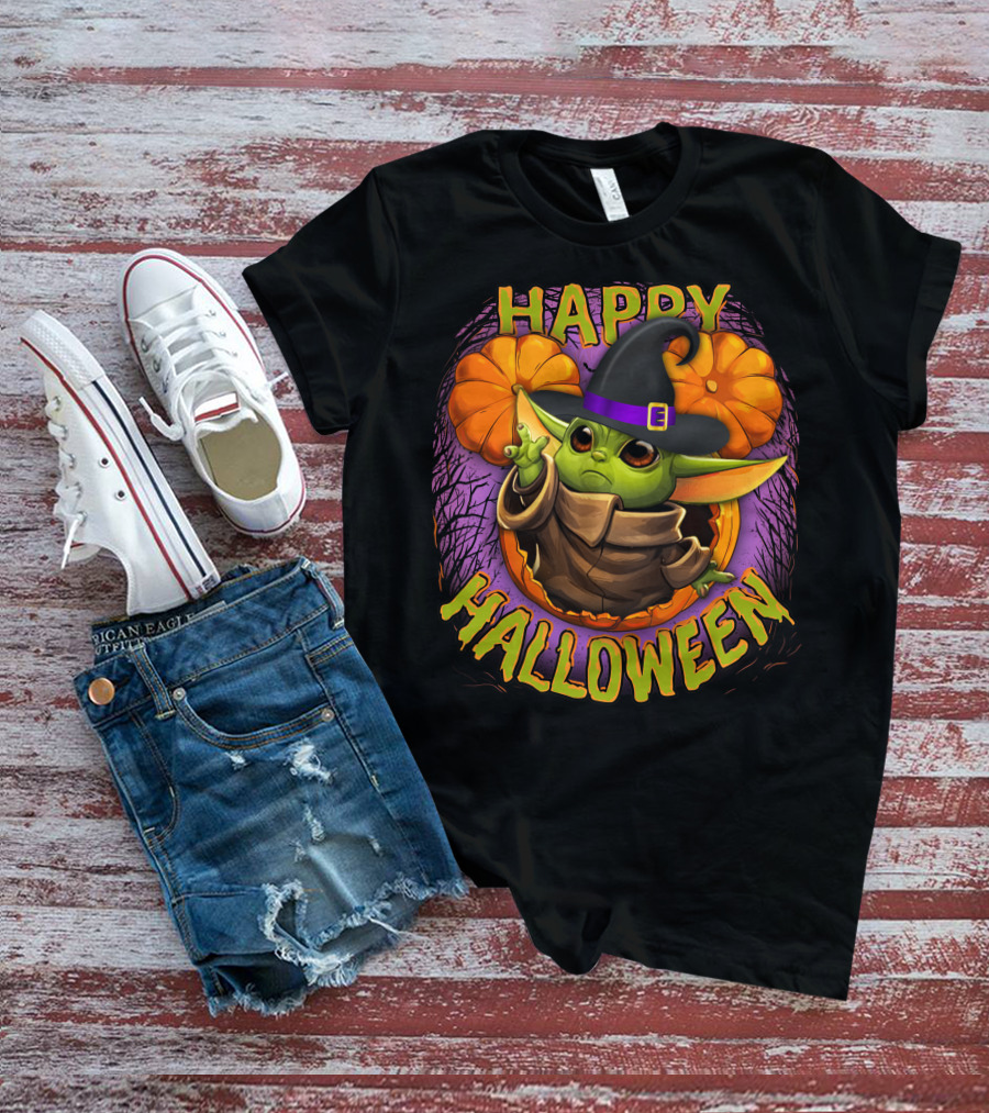 Happy Halloween Baby Yoda Magic Pumpkin Wizard Hat T-Shirt