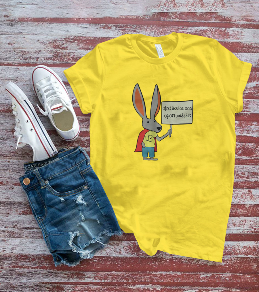The UB Conejo Obstáculos Son Oportunidades Amarillo Shirt offers a regular fit. Made from 100% ring-spun cotton that is pre-shrunk to help maintain size and shape after washing. Features reinforced construction details for durability. Available in U.S. standard sizes S-5XL to accommodate various body types.