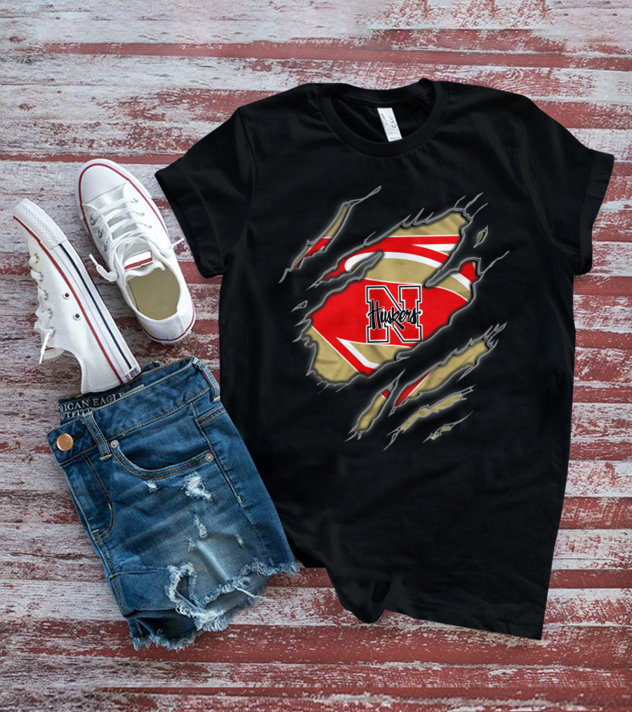 Nebraska Cornhuskers Huskers N Superman Logo Rip Effect T-Shirt