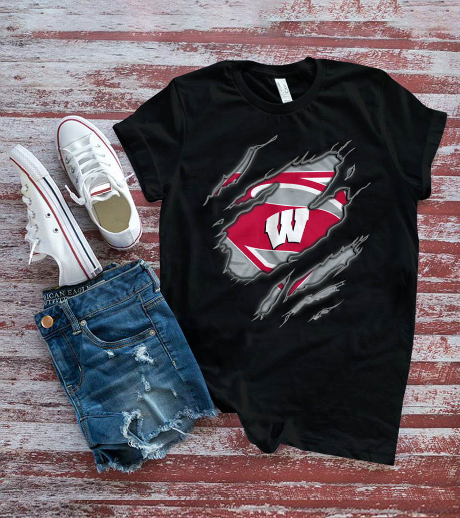 Wisconsin Badgers Superman Logo Ripped Effect T-Shirt