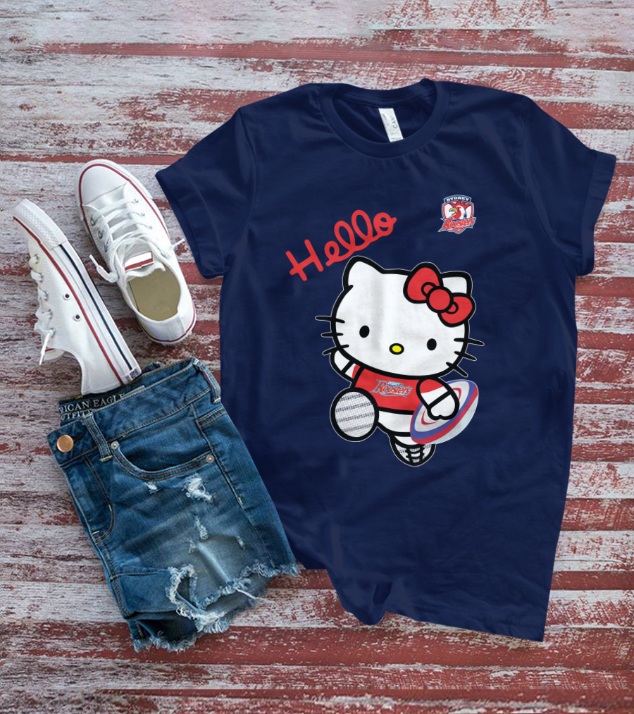 Hello Kitty Sydney Roosters NRL001 Red Bow Rugby Character T-Shirt