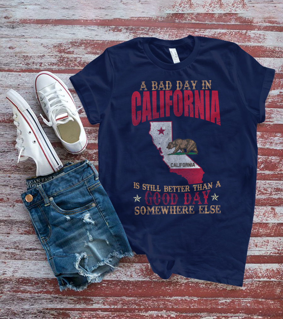 A Bad Day In California Is Still Better Than A Good Day Somewhere Else California Map Bear Flag T-Shirt
