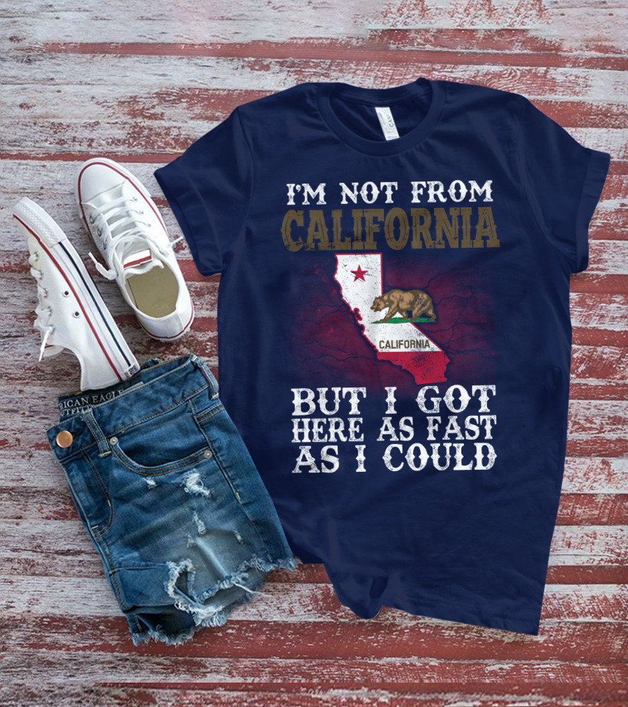 I'm Not From California But I Got Here As Fast As I Could Bear Flag Map T-Shirt