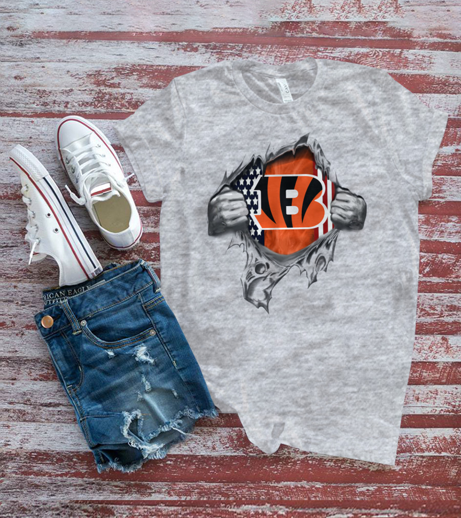 The Cincinnati Bengals American Flag Fan Pride Burst Shirt offers a regular fit. Made from 100% ring-spun cotton that is pre-shrunk to help maintain size and shape after washing. Features reinforced construction details for durability. Available in U.S. standard sizes S-5XL to accommodate various body types.
