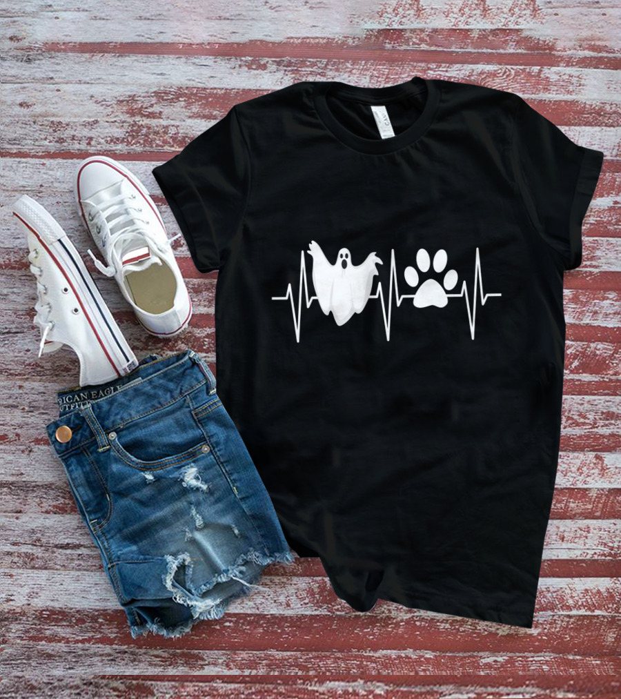 Dog Lover Ghost Hunter Heartbeat Pawprint Ghost T-Shirt