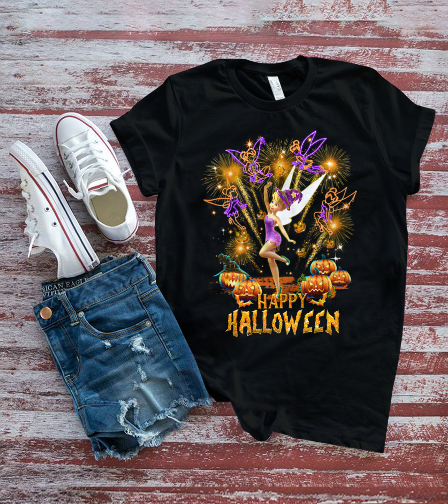 Happy Halloween Tinkerbell Firework Display With Pumpkins T-Shirt