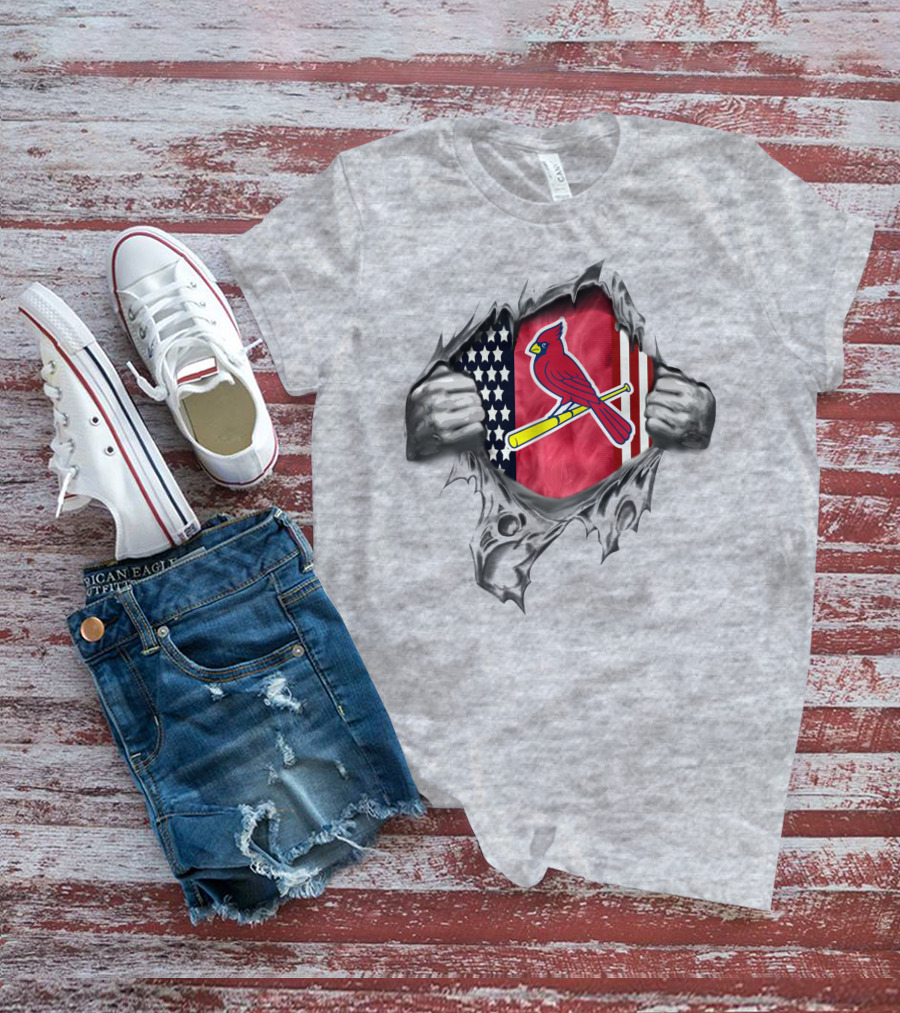 St Louis Cardinals American Flag Rip Chest T-Shirt