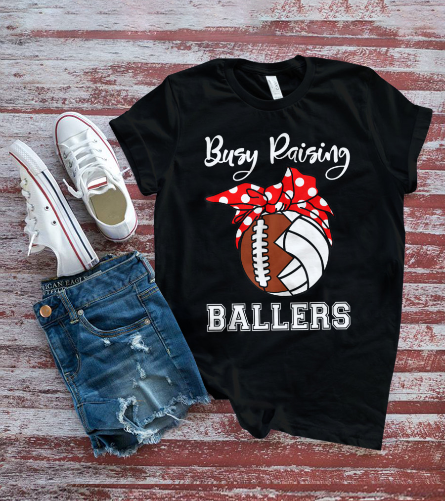 Busy Raising Ballers Football Volleyball Funny Polka Dot Bow T-Shirt
