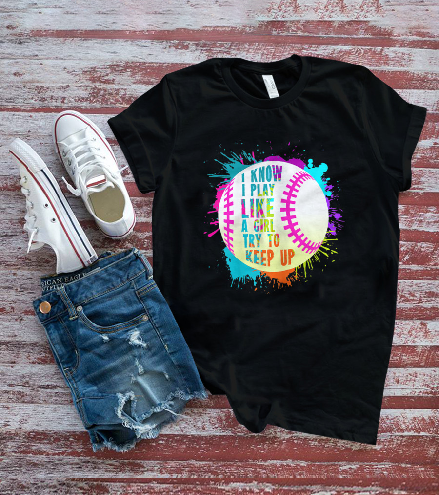 I Know I Play Like A Girl Try To Keep Up Softball Baseball T-Shirt