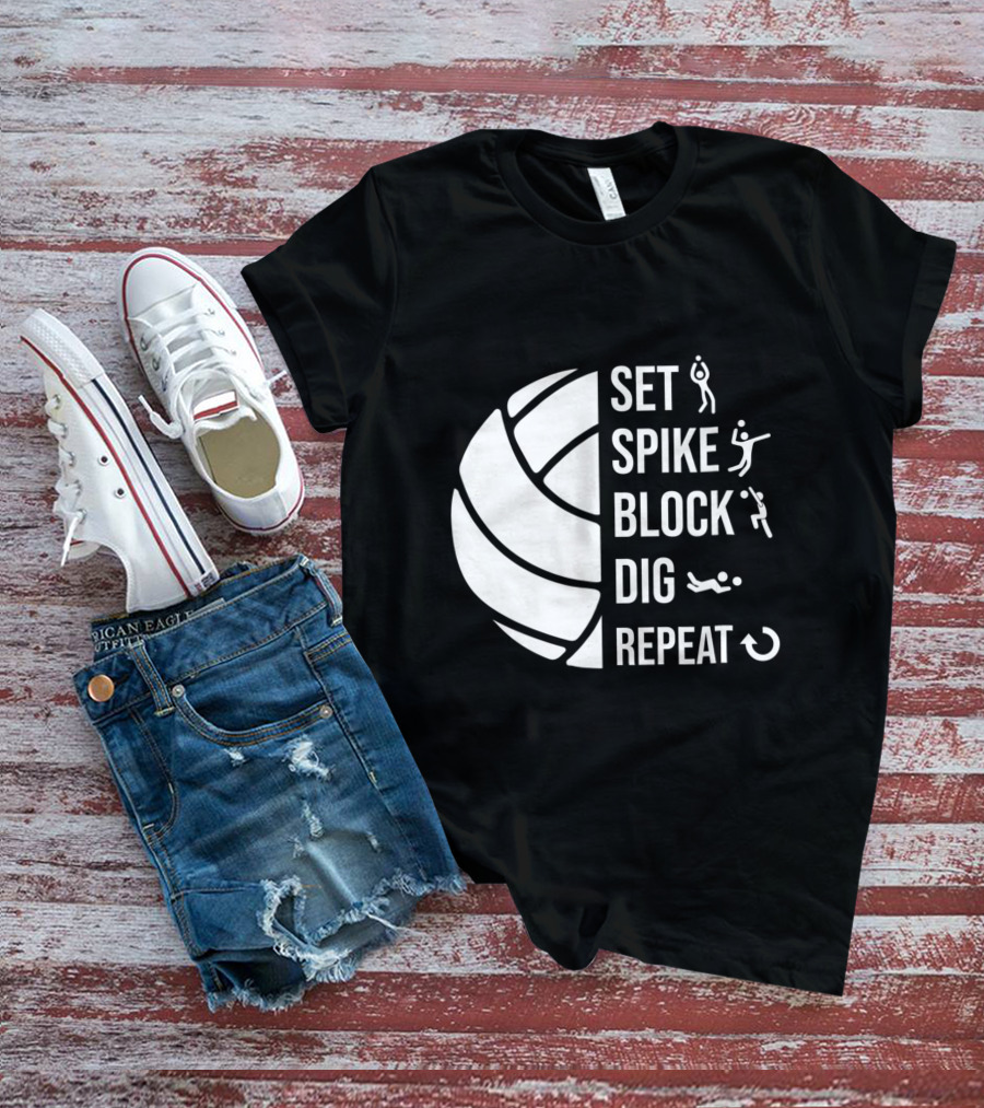 Set Spike Block Dig Repeat Volleyball For Girls Moms Coach T-Shirt