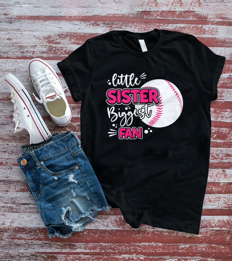 Little Sister Biggest Fan Baseball Season For Girl Siblings T-Shirt
