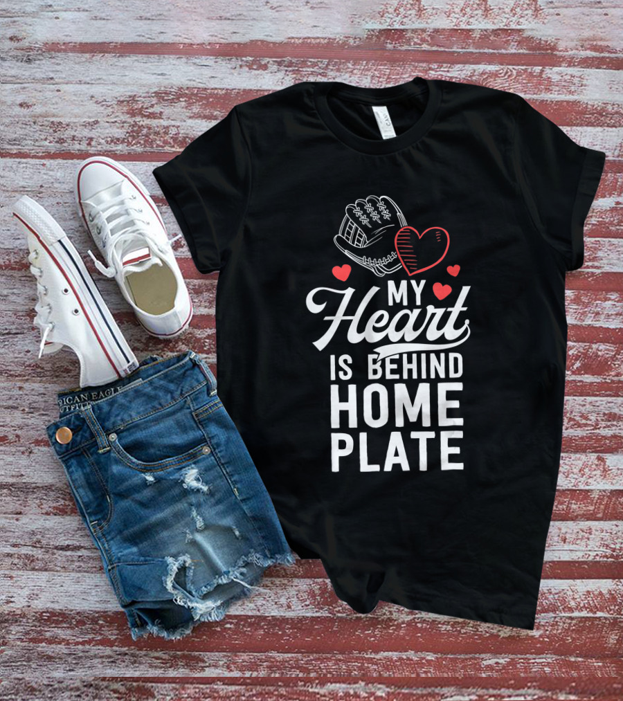 My Heart Is Behind Home Plate Catcher Baseball Mom T-Shirt