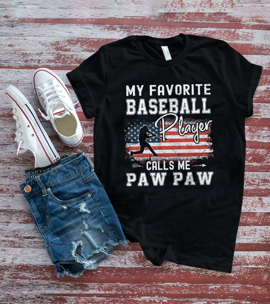 My Favorite Baseball Player Calls Me Paw Paw American Flag T-Shirt