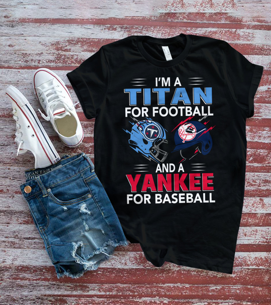The I'm A Titan For Football And A Yankee For Baseball Shirt offers a regular fit. Made from 100% ring-spun cotton that is pre-shrunk to help maintain size and shape after washing. Features reinforced construction details for durability. Available in U.S. standard sizes S-5XL to accommodate various body types.