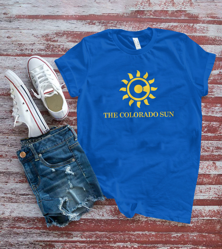 The The Colorado Sun Merch Colorado Sun Logo Yellow Sunburst Blue Background Shirt offers a regular fit. Made from 100% ring-spun cotton that is pre-shrunk to help maintain size and shape after washing. Features reinforced construction details for durability. Available in U.S. standard sizes S-5XL to accommodate various body types.