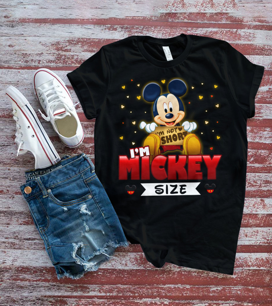 The I'm Not Short I'm Mickey Size Shirt offers a regular fit. Made from 100% ring-spun cotton that is pre-shrunk to help maintain size and shape after washing. Features reinforced construction details for durability. Available in U.S. standard sizes S-5XL to accommodate various body types.