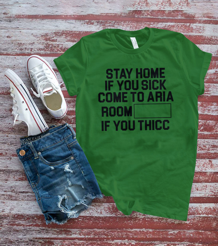 The Stay Home If You Sick Come To Aria Room If You Thicc No Context Vegas Shirt offers a regular fit. Made from 100% ring-spun cotton that is pre-shrunk to help maintain size and shape after washing. Features reinforced construction details for durability. Available in U.S. standard sizes S-5XL to accommodate various body types.