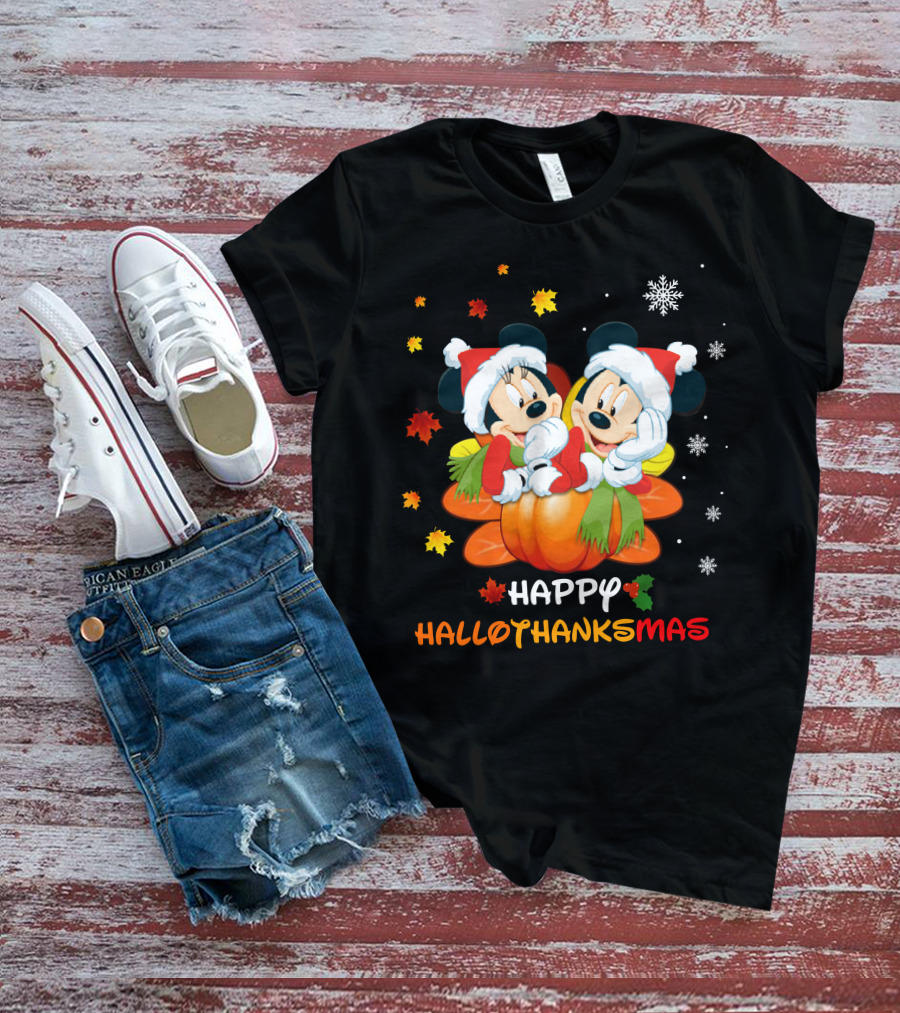 Mickey Happy HalloThanksMas Pumpkin Leaves Snowflakes T-Shirt