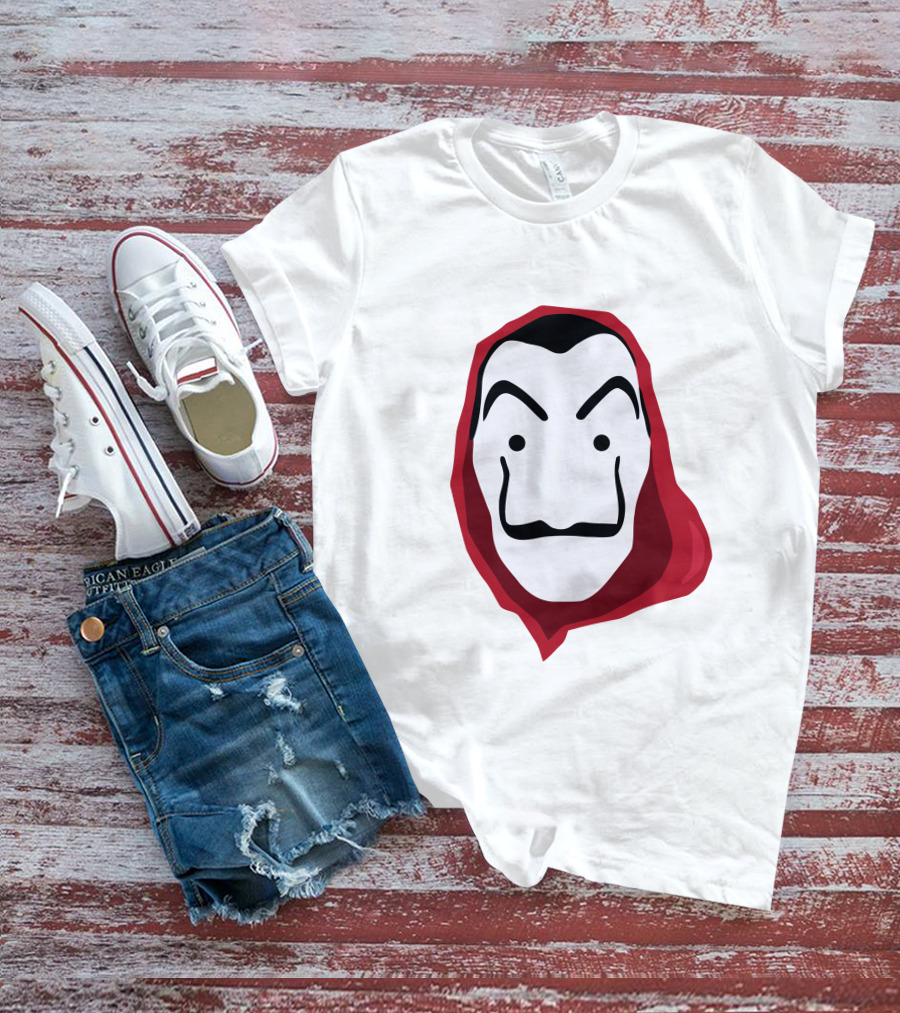 The La Casa De Papel Money Heist Salvador Dalí Mask Red Shirt offers a regular fit. Made from 100% ring-spun cotton that is pre-shrunk to help maintain size and shape after washing. Features reinforced construction details for durability. Available in U.S. standard sizes S-5XL to accommodate various body types.