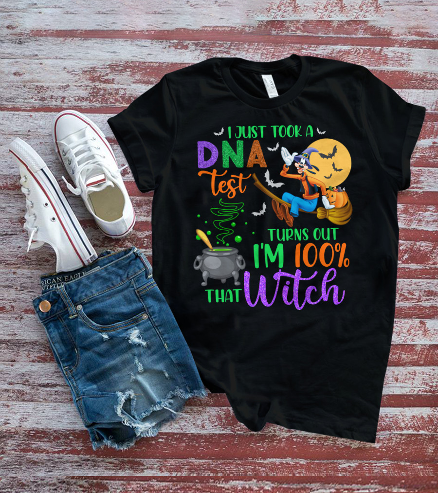 The I Just Took A Dna Test Turns Out I'm 100% That Witch Goofy Halloween Moon Bats Cauldron Shirt offers a regular fit. Made from 100% ring-spun cotton that is pre-shrunk to help maintain size and shape after washing. Features reinforced construction details for durability. Available in U.S. standard sizes S-5XL to accommodate various body types.