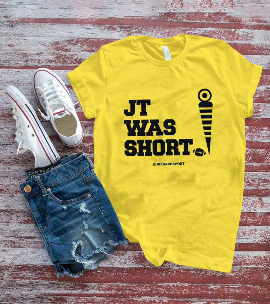 The JT Was Short @DiehardSport Football Marker Shirt offers a regular fit. Made from 100% ring-spun cotton that is pre-shrunk to help maintain size and shape after washing. Features reinforced construction details for durability. Available in U.S. standard sizes S-5XL to accommodate various body types.